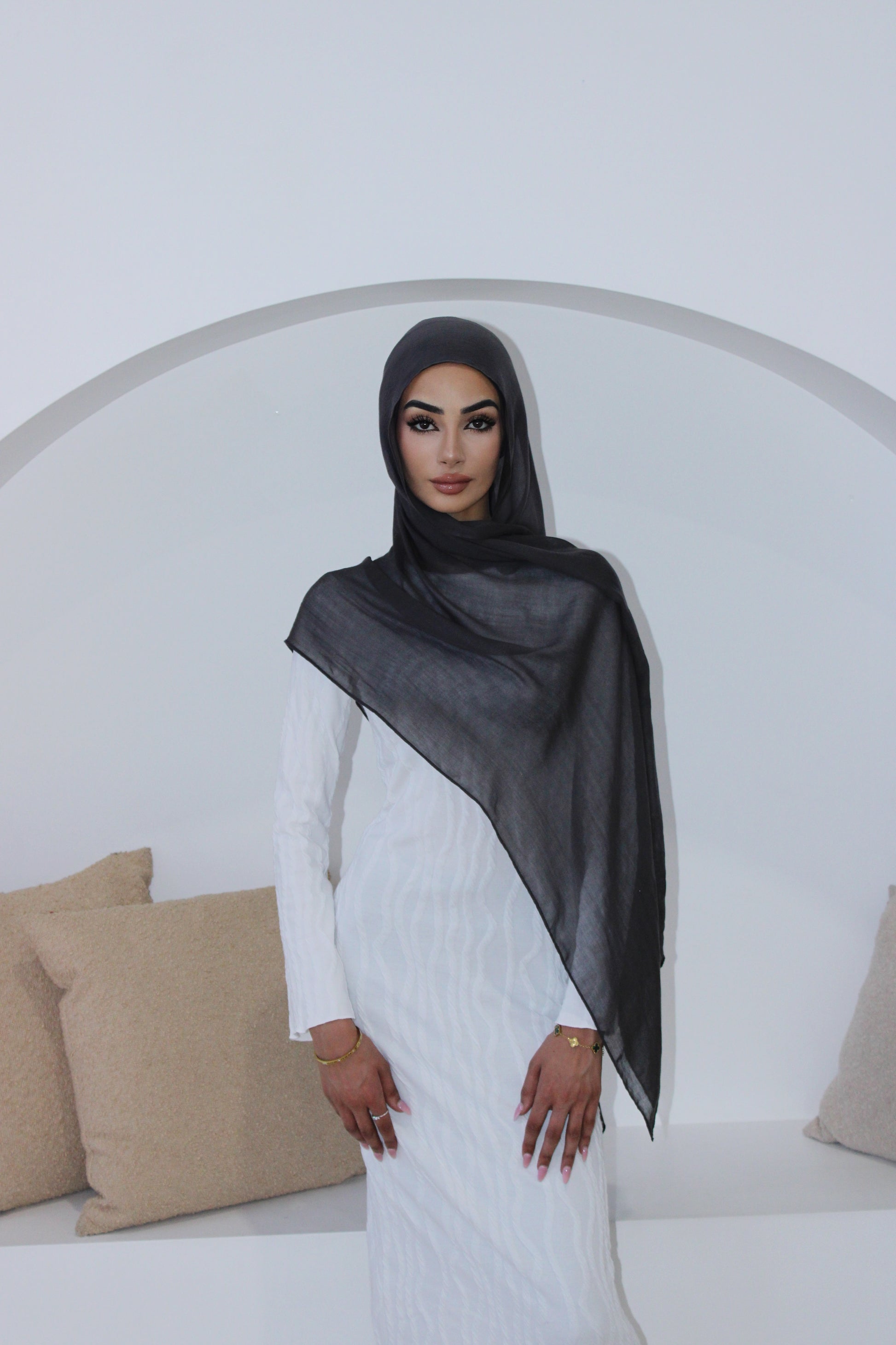Elevate your modest fashion with our Charcoal Modal Set, featuring a luxuriously soft hijab paired with a perfectly matched undercap. The rich dark charcoal grey creates a sophisticated, versatile look that effortlessly complements any wardrobe. Crafted from breathable modal fabric, this coordinated set ensures comfort throughout your day while maintaining an elegant, polished appearance. The undercap provides secure, comfortable coverage, while the hijab drapes beautifully for a refined finish. Perfect for everyday wear or special occasions, this essential set combines style, comfort, and practicality in one stunning package.